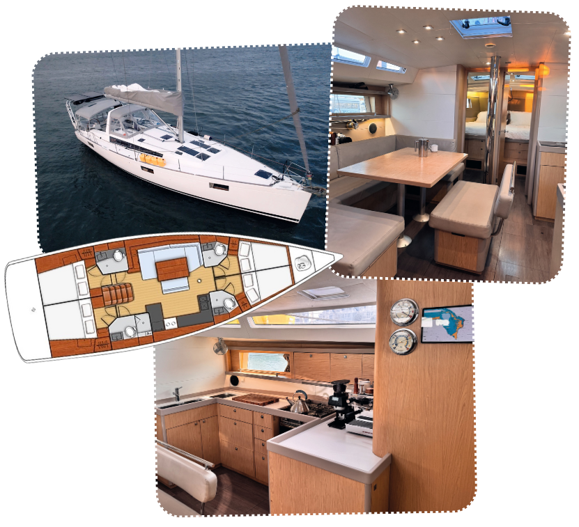 On deck, life slows down. There’s space to stretch, lie back, or gather as the light changes. The swim step is generous and simple, ideal for morning swims, long dips, and drying off in the sun. The boat is set up for real life at sea: a water maker, solar, air conditioning when needed, heat when it’s not. Everything is intentionally designed to make life aboard comfortable and easy.